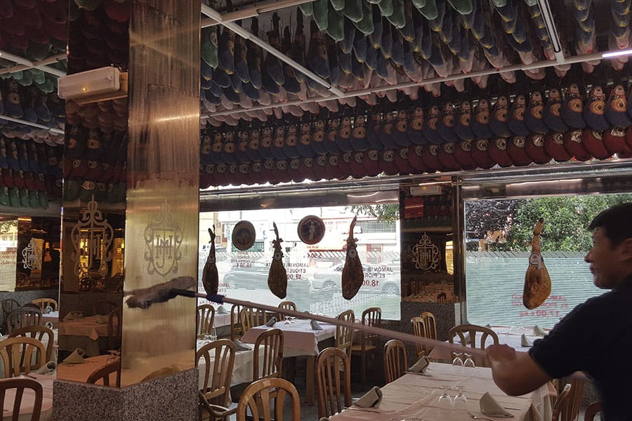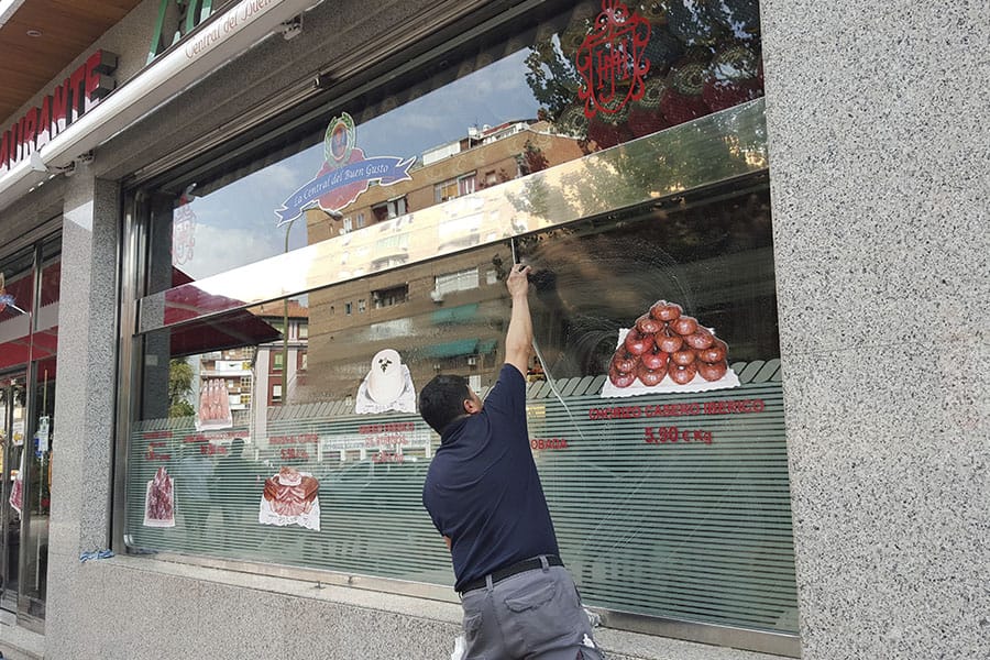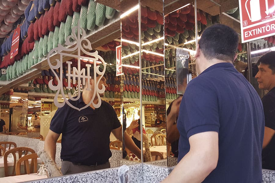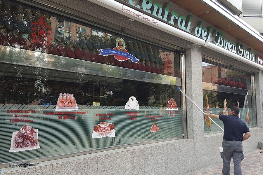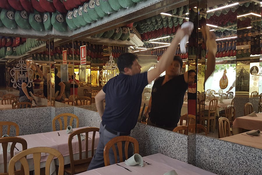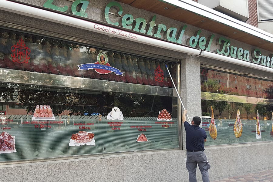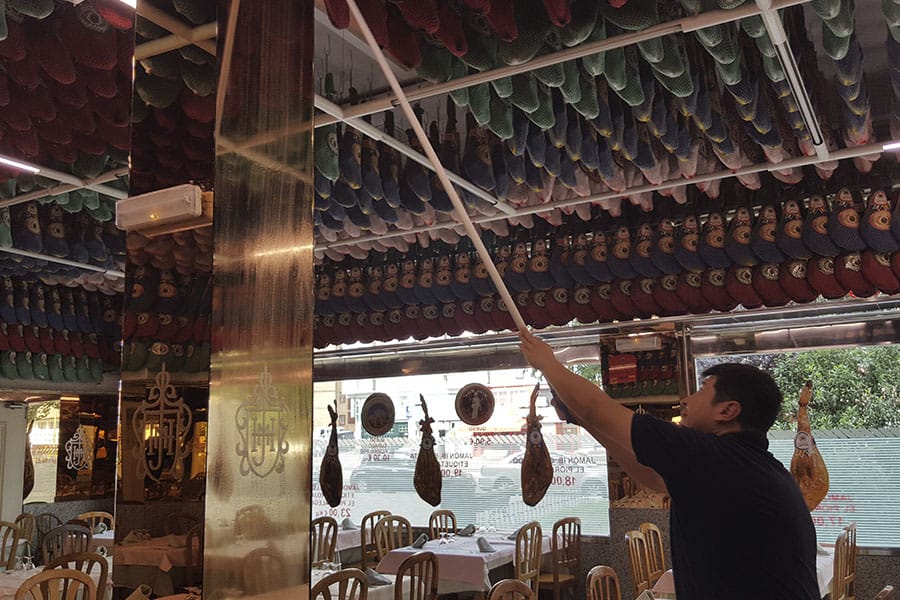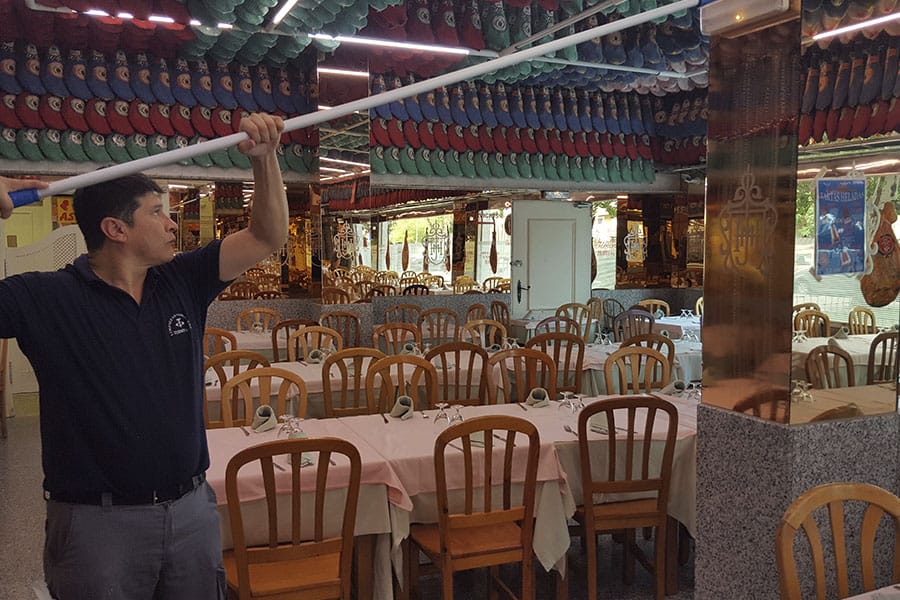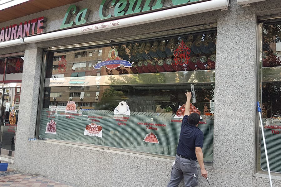 Limpieza de cristales y espejos en un restaurante de la cadena Museo del Jamón